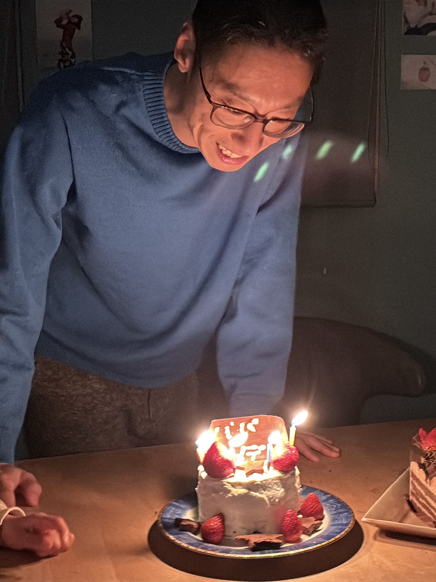 家族にもお祝いしてもらい。手作りケーキいただきました。感謝!