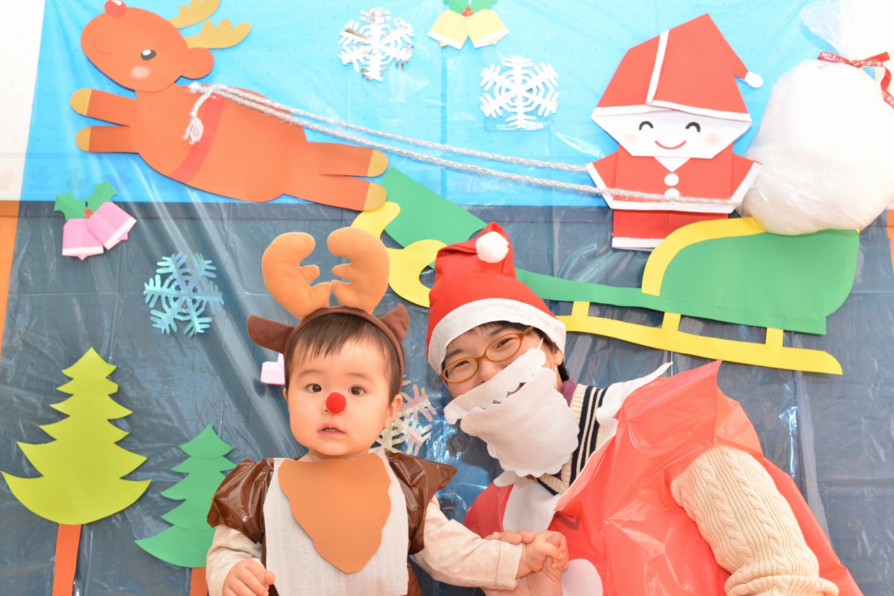 今日は大阪府泉大津市にある認定こども園とれぞあ子ども園での月一写真イベントの開催でした。毎回違うものになりきって、親子で楽しく笑顔写真をしています。今日のテーマは「サンタとトナカイ」。かわいいトナカイと素敵なサンタさんが誕生しましたよ。