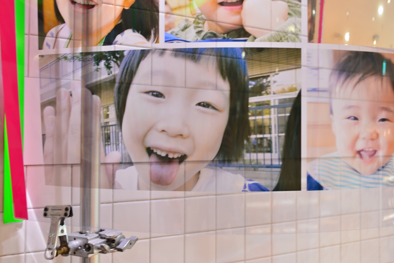 私、笑顔写真家えがお先生が開いた「笑顔写真教室」で、参加者(小学生や親子)で撮ってもらった写真も多数展示されています。